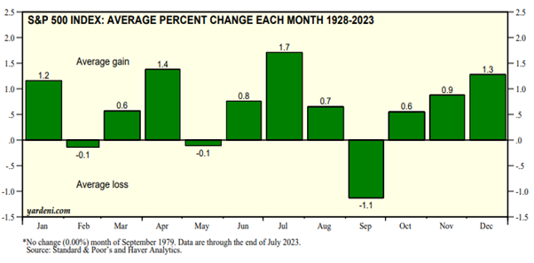 不管解释是什么,事实是,市场在某些月份的表现往往比其他月份好。由于这种异常现象的规律性,一些交易员和投资者通过在一年中的不同时期投资和在另一个时期抛售来寻找利用这种趋势的方法。这就产生了一些华尔街的格言,比如“1月效应”、“5月抛售”和“年末反弹”。然而,尽管季节性模式非常有规律,可以利用,但它并不提供确定性,就像其他市场模式一样。市场回报在某些月份比其他月份好,这一事实并不能保证市场在未来的表现也会一样!标准普尔500指数历史月度回报率标准普尔500指数是最受欢迎的,也是研究季节性影响最多的指数。该指数由美国股市500只市值最高的股票组成,通常被视为美国股市的代表。对过去九十五年里 (1928-2023) ,该指数月度回报率的各种研究表明,其往往在岁末、4和7月份获得强劲回报。对于大多数股票来说,最好的季节仍然是在年底和新年之交,一直持续到4月。通常在5月,市场回报开始下降。