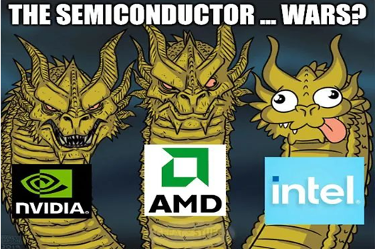 英特尔长期专注CPU市场,对显卡市场只是凑数,现在真正的GPU市场竞争就是在英伟达和AMD之间。前者目前占据了市场的80%左右份额,而且主打的是高端芯片,AMD是中端定位,高下立分。