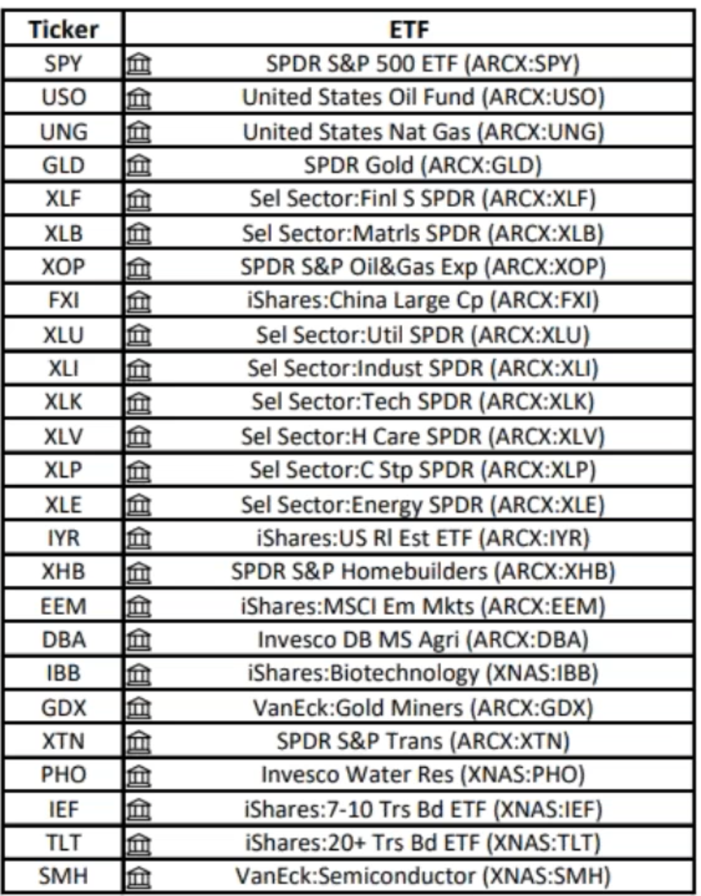 ETF – Exchange traded fund,完整的翻译是“交易型开放式指数证券投资基金”,又称“交易所交易基金”。ETF 是一种跟踪“标的指数”变化,且在证券交易所上市交易的基金。这个“标的”可以是某种大宗商品,也可以某一类的股票,或者是债券,也可以是多 种资产标的共同组合。ETF 最大的好处就是将特定类型的资产标的聚合在一起,做成一个产品来进行售卖。这 使得投资者省去了对行业内个别标的的研究分析,只需要在大方向上作出一个大致的判断,就可能获得行业整体的收益。通过 ETF 来持有一篮子某类的资产,也同样可以起到分散风险的作用。因此在许多时候,ETF 可以作为投资者长期持有的资产选择,从而获得稳定的分红以及资本增值收益。GO Markets 目前可交易的品种简介