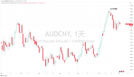 很多投资者也非常关注澳元对人民币货币对,此前6月澳元对人民币而言是一度触及今年的最高点4.9,本次澳洲暂停加息消息的半小时后,澳元对人民币下跌0.52%,1澳元可兑换4.8左右的人民币。我们表达的核心观点是,在澳洲维持高利率且后续还有概率加息,而中国降息的刺激经济的情况下,澳元对人民币在4.8水平有比较强劲的支撑,短期内不太可能回到此前4.5-4.6的水平区间。