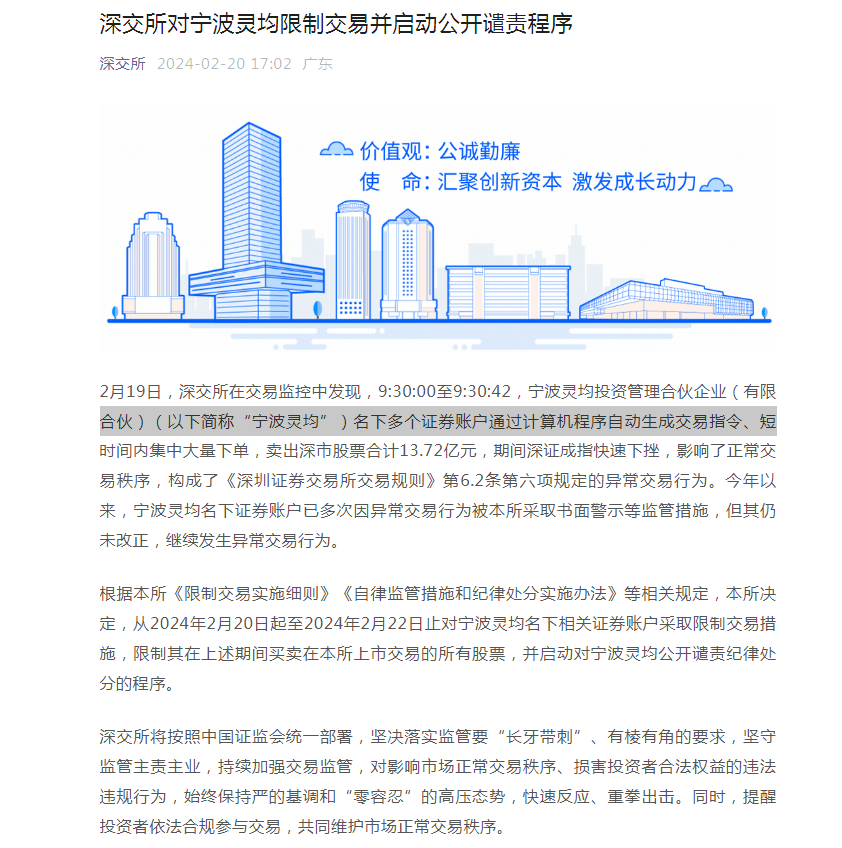 房产建设来看,其实许多经济学家此前就预测过中国房地产市场存在过度建设问题,房产建设价值约占中国GDP四分之一,这种不可持续的现象仍然会对经济产生影响,降息对房产的正向作用仍有待验证。除了降息,中国监管机构采取了一系列措新施应对股市暴跌,还包括量化基金交易禁令,以降低市场波动。“量化巨头”灵均投资是中国四大量化基金之一,管理规模超百亿。 因为一分钟内抛售了 25.7 亿元人民币(约合 3.6 亿美元)的股票而被沪深交易所限制交易并公开谴责。有消息推测灵均交易 的是正是中证1000相关的量化策略。